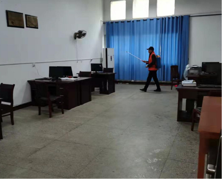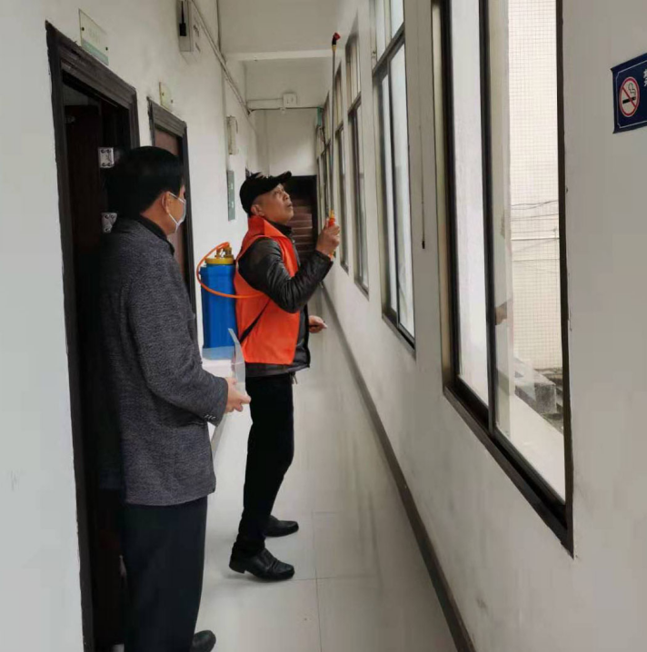 为了防控病菌滋生,2月4日上午,学院领导带队,对南校运动场入口、各教研室、办公室、会议室、党员活动室等场地,实施消毒杀菌,有效防控疫情。