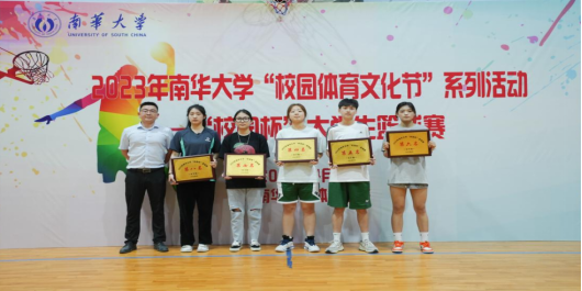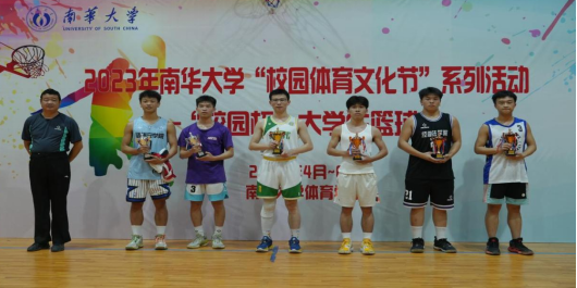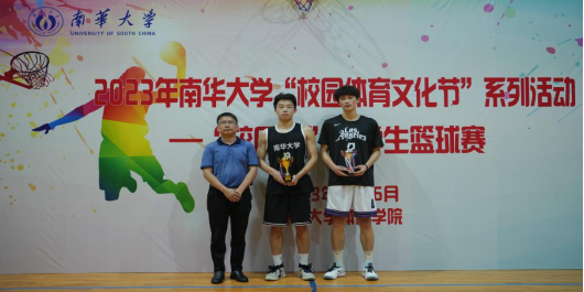 船山学院党委书记阳剑兰为男子扣篮大赛获奖运动员颁奖